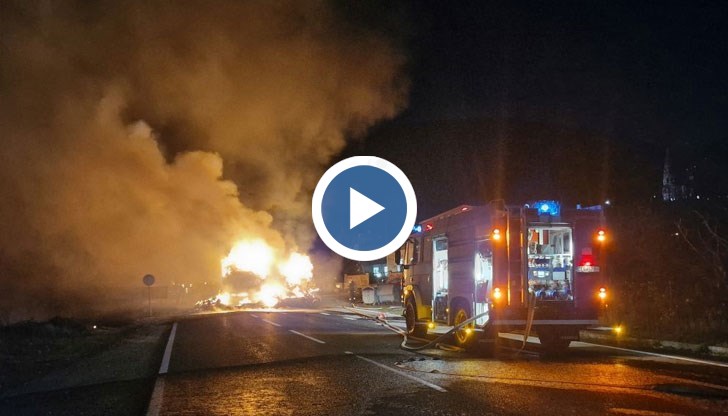 „Тъй като камионите са натоварени със слама, вероятно гасенето ще продължи доста дълго“, коментира още старши инспектор Михаил Михов.