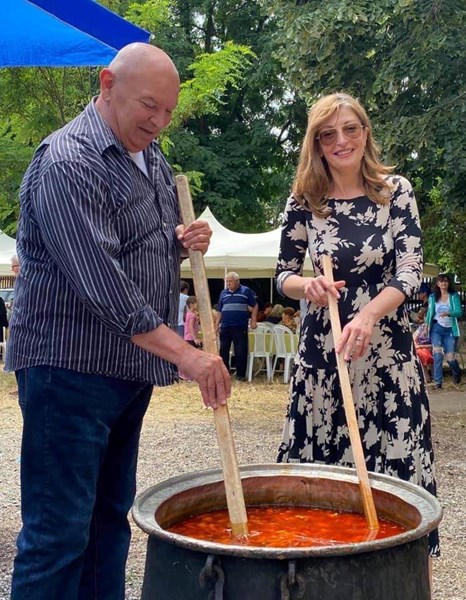 Кампанията: Баце прегръща жени, Корнелия шие на машина, а Захариева бърка манджи