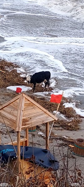 Група къмпингуващи са се притекли на помощ на бедстваща крава в района на Китен. Животното е било повлечено от силна приливна вълна. Тя го е влача от района на Китен до къмпинг „Гардения“, локализиран малко след устието на река Караагач.