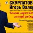 Той излезе със странна предизборна програма, насочена предимно към жените. „Ако искаш богат мъж, гласувай за Скурлатов”, призовава той.