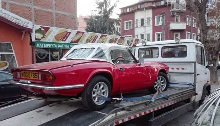 Жената беше изненадана с червен английски автомобил "Триумф". Ретро колата беше доставена в центъра на Кърджали с автовоз и веднага привлече погледите на случайни минувачи, сподели 24 часа.