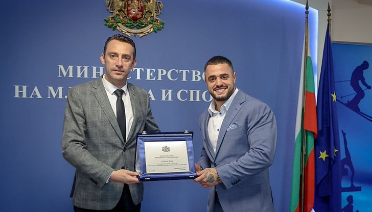 Почетен плакет от министър Пешев получи и треньорът по вдигане на тежести Павел Христов, който е част от екипа, подготвящ Насар за състезанията.