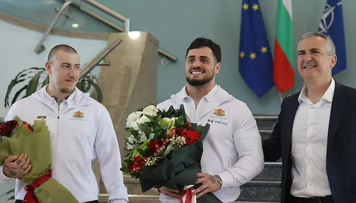 Шампионът, който стъпи на европейския връх в категория до 94 килограма, кацна на летище "Васил Левски" около 15:00 часа днес. На терминала той бе посрещнат от своето семейство, приятелката си Александра и брат си Иван Александър. На аерогарата пристигна и служебният министър на младежта и спорта Димитър Илиев, който връчи огромни букети на златния медалист, както и на завърналия се с него бронзов медалист в категория до 110 килограма Христо Христов.