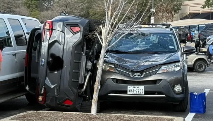 Зрелищна катастрофа, наподобяваща популярната компютърна игра "Тетрис", се разигра на паркинг, при която автомобил Subaru Crosstrek се озова между Toyota RAV4 и Ford по необичаен начин.