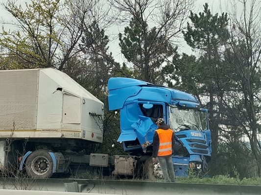 ТИР-ът е бил в отсрещната страна на платното, преминал е през мантинелата и се е забил в дере. Инцидентът е предизвикал километрични задръствания и в двете посоки на пътя Русе - София, пише в. "24 часа".