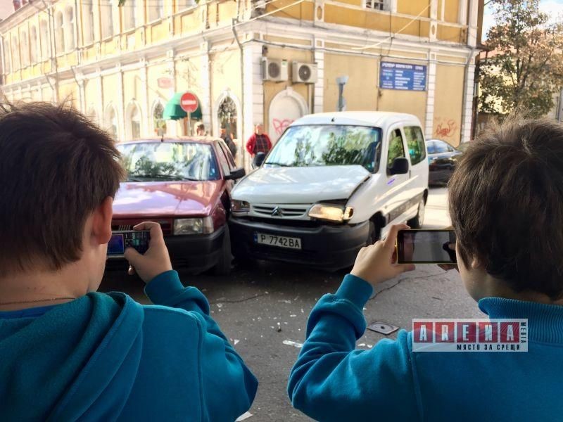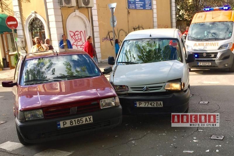 Причината е неспазване на предимство от страна на ситроена, който е блъснал идващия фиат по ул. „Хр. Г. Данов“.
