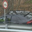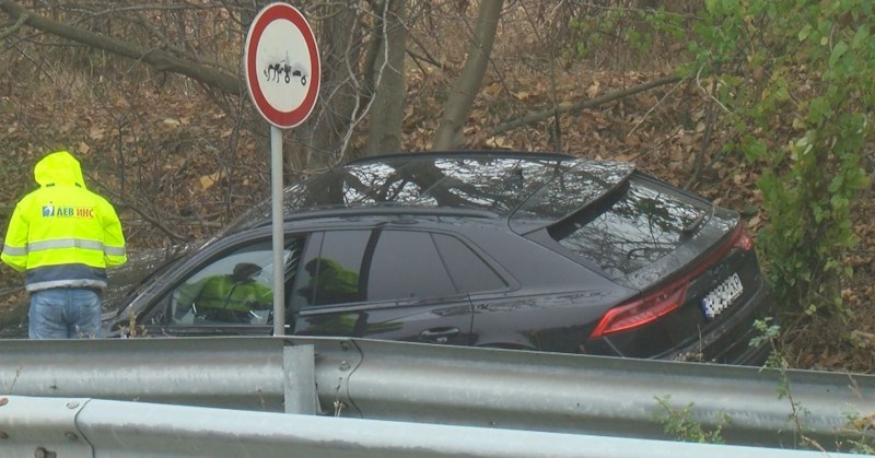Ударът не е бил силен, но колата е излязла от пътя и е паднала в канавката. От полицията потвърдиха, че няма пострадали хора при инцидента, а само материални щети.
