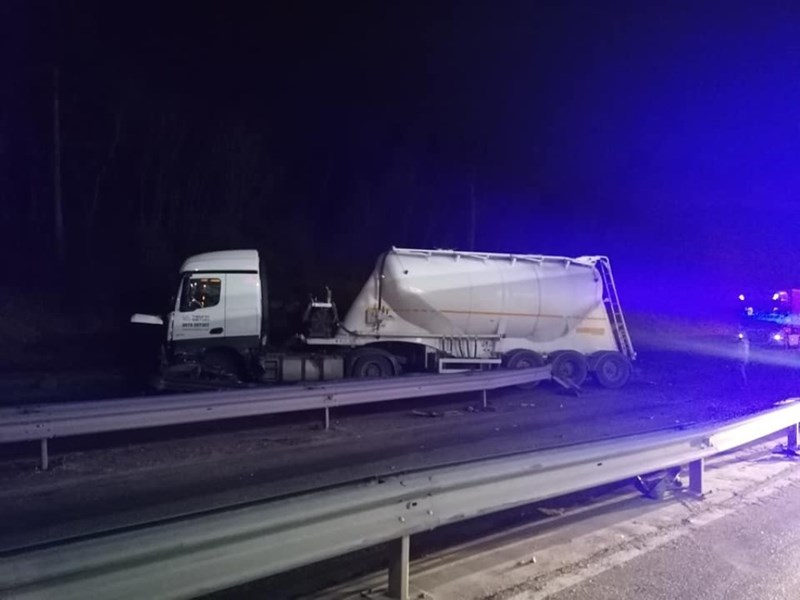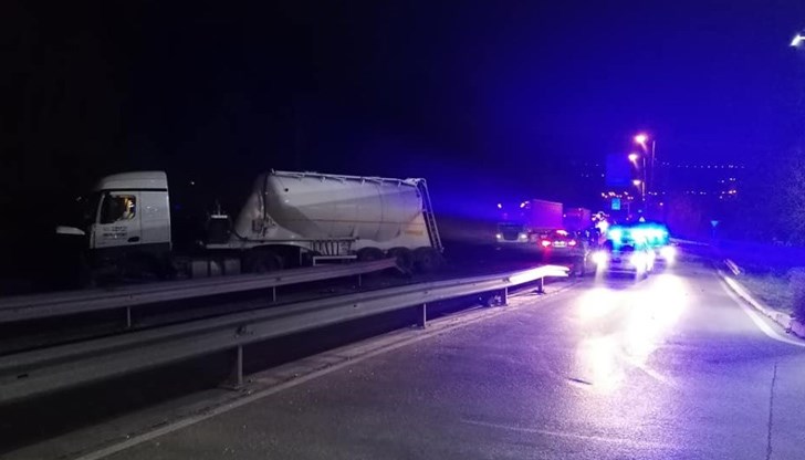 Произшествието е станало малко преди полунощ. Цистерна, превозваща цимент, изпреварвала лек автомобил в посока София - Варна, съобщи bTV.