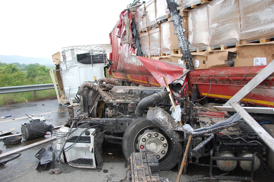 Бързодвижещ се тир се вряза в друг на магистрала „Марица“ рано тази сутрин.