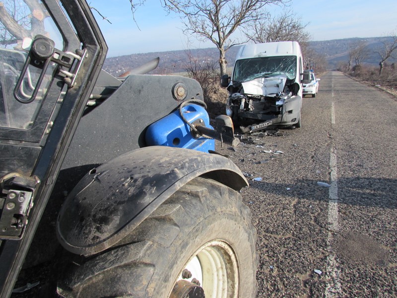 Катастрофа между товарен микробус и селскостопанска фадрома изпрати един човек в болница.