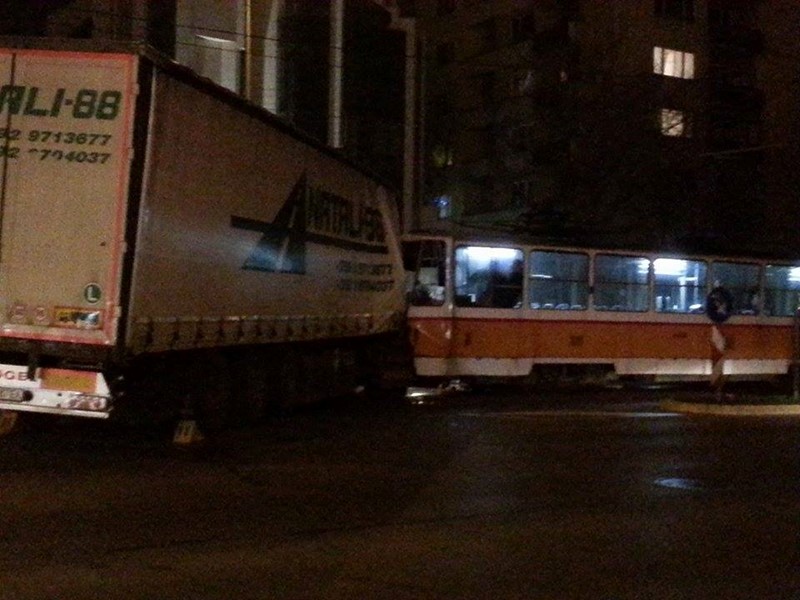 По първоначални данни трамваят се е движел на зелен светофар, когато тирът е опитал да вземе ляв завой и мотрисата го е ударила.