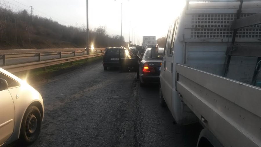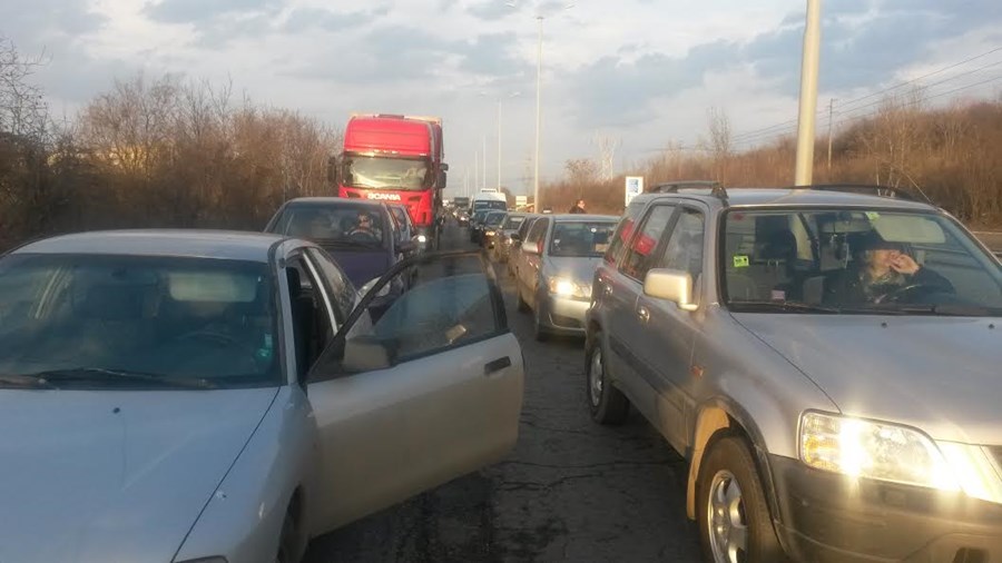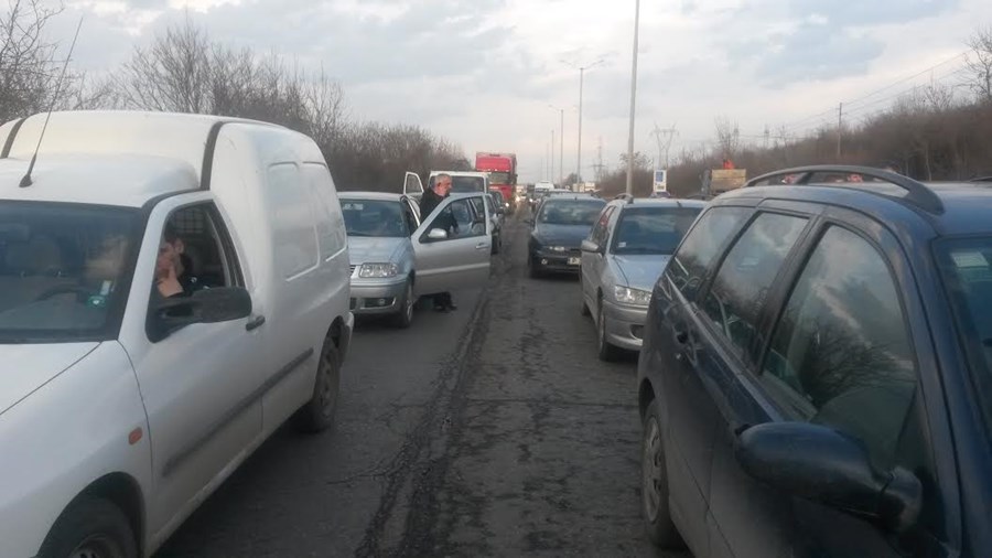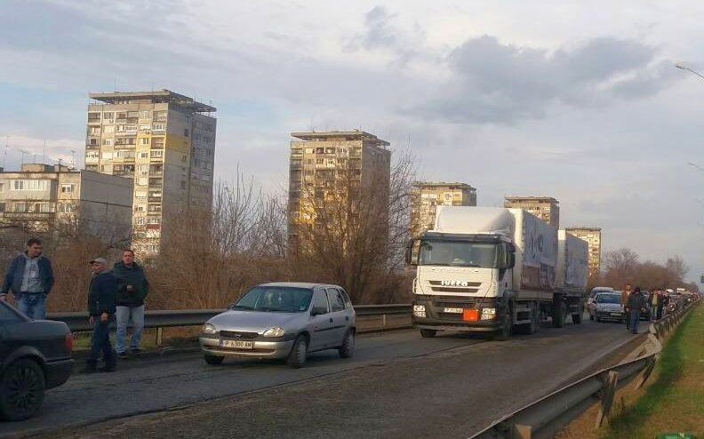 Затруднено е движението по бул. „България“ в посока от Дунав мост към града, съобщиха очевидци, цитирани от TVN.