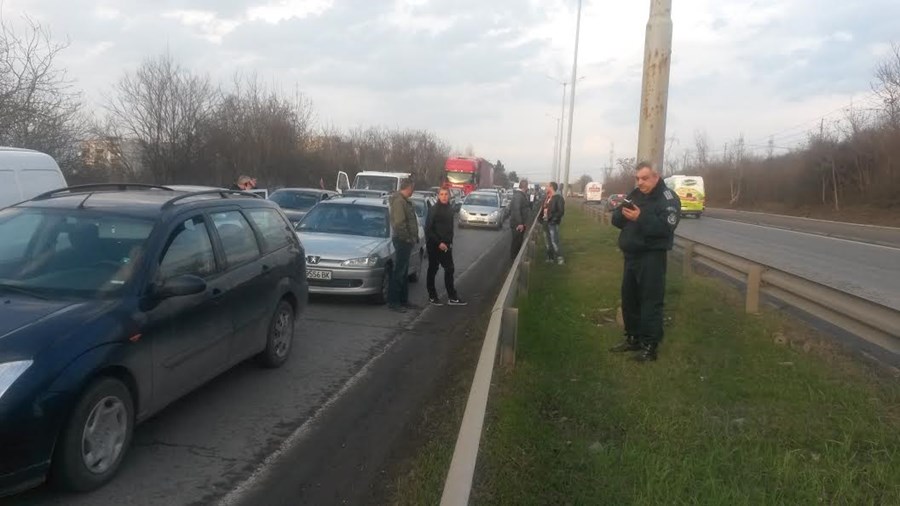 Инцидентът станал около 17 часа. Фирмен автомобил с варненска регистрация се ударил в мантинелата.