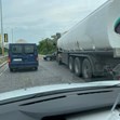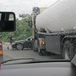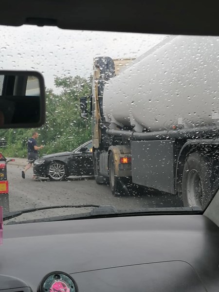 По първоначална информация са се ударили лек автомобил "Ауди" и цистерна.