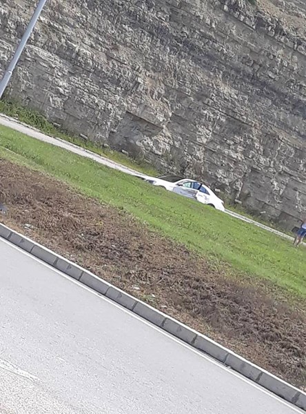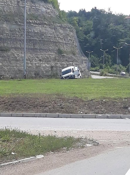За това съобщиха очевидци на инцидента. Любителски кадри показват микробус, излязъл от пътното платно и "кацнал" в затревеното пространство встрани. На снимките се вижда и пострадал лек автомобил, чиято половина е смачкана.