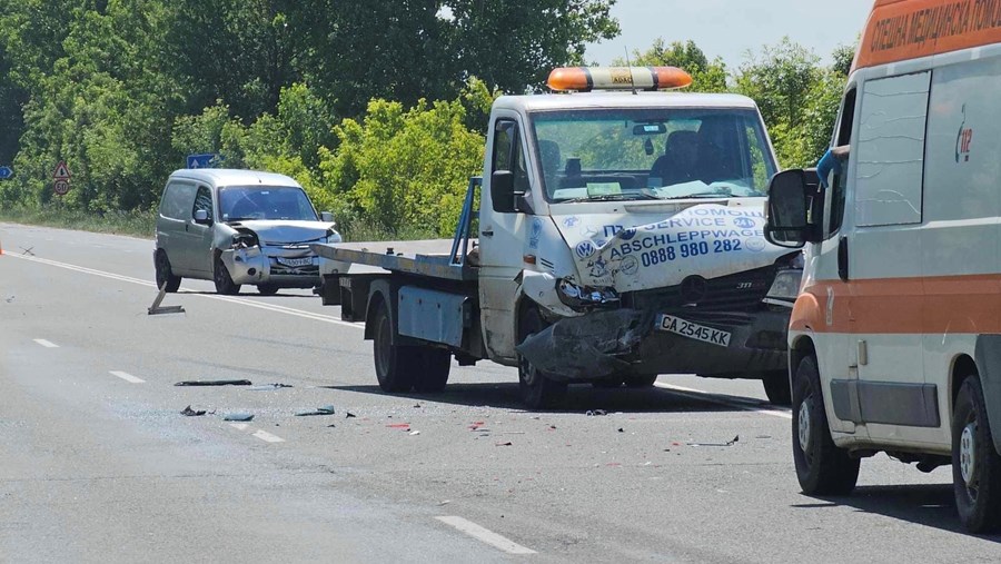 Ударили са се три автомобила, като единият е на пътна помощ. На мястото на местопроизшествието има екипи на Спешна помощ и полицията.