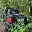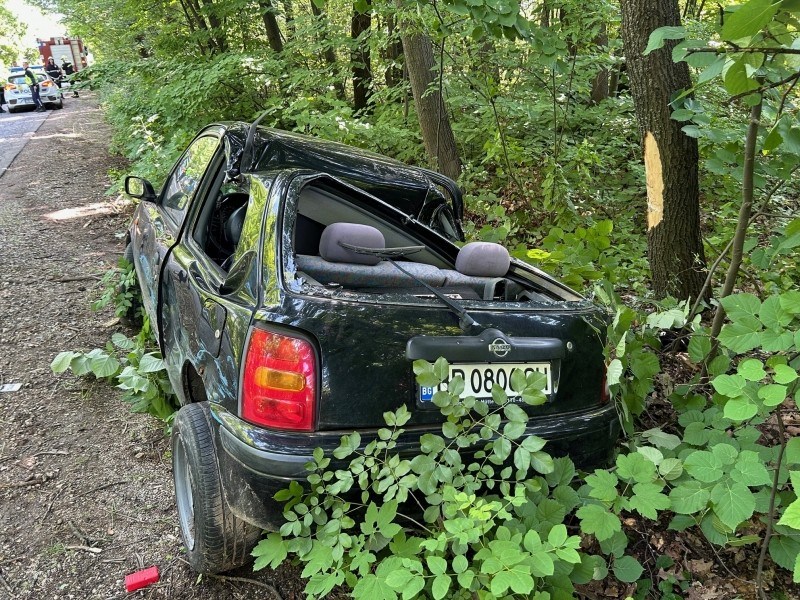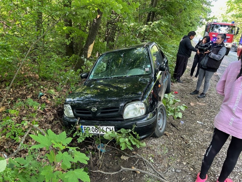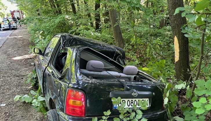 При сблъсъка малкото возило се завъртяло, излязло от пътя и се забило в дърво.