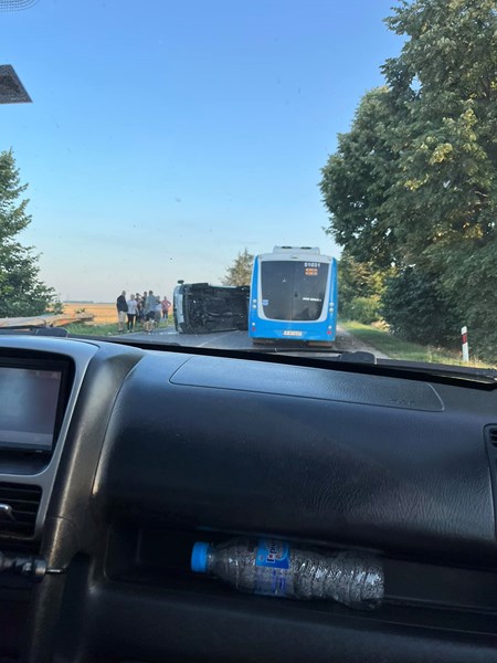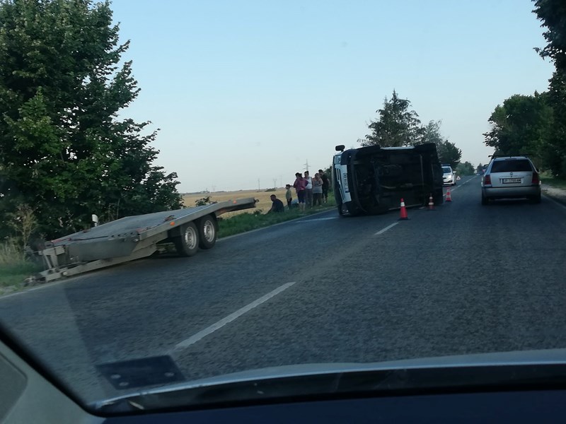 Пътнически микробус с търговищка регистрация се е преобърнал в платното в посока Русе.
