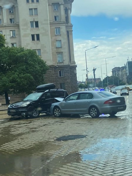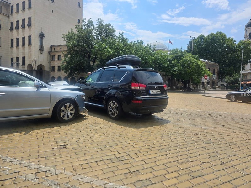 При катастрофата има нанесени материални щети по двата автомобила, но за щастие няма пострадали хора. Въпреки това, инцидентът създаде сериозни затруднения за движението в централната част на града, където трафикът е особено интензивен в този час на деня.