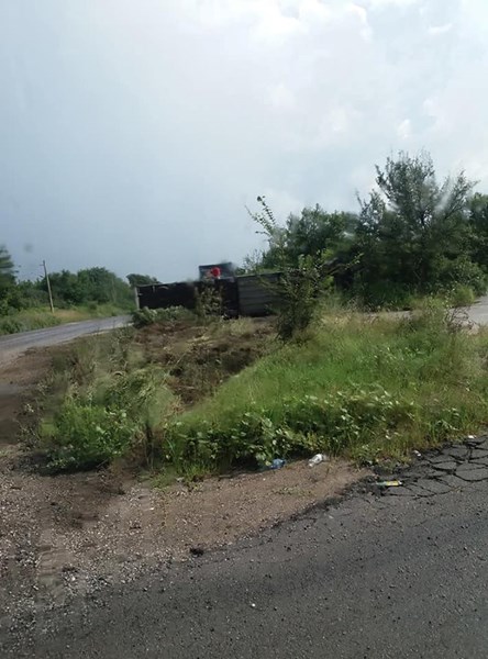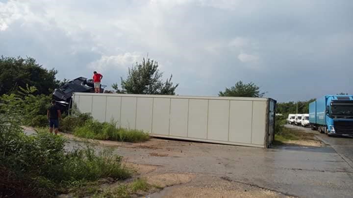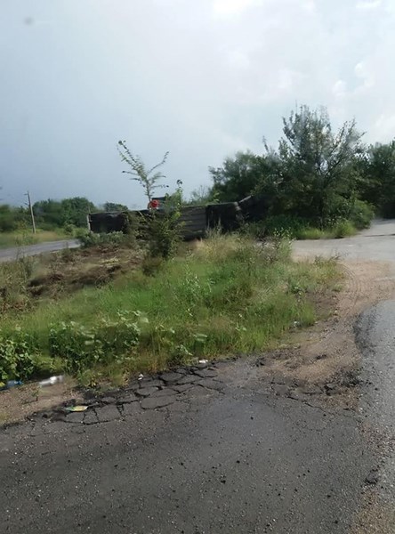 Камионът се е обърнал, като не запречва движението по пътя. Шофьорът по чудо се е разминал невредим.