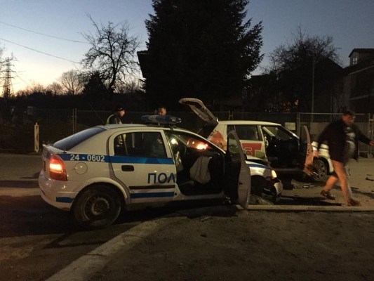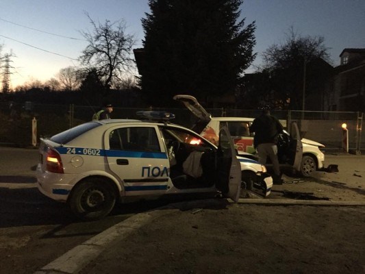 Сблъсъкът между полицейската кола и лекия автомобил е станал на кръстовището на столичния булевард „Монтевидео” и улица „Боряна”.