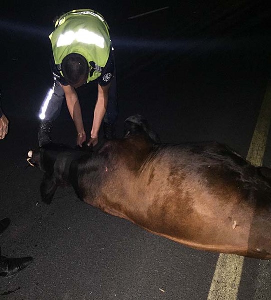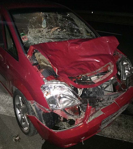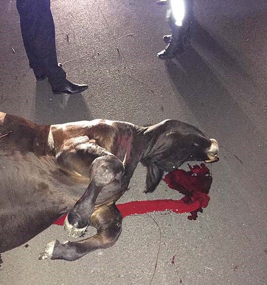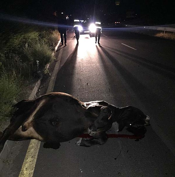 Катастрофата стана по пътя за Момчилград пред автокъща „Туни“, пише Салих Гьокче. По думите на читателя низаради слаба видимост поради липса на осветление, шофьорът е ударил крава на пътното платно. Животното е на паважа с окървавена глава. Колата е смачкана от удара, капакът й нагънат на хармоника, а стъклото потрошено, се вижда от снимките.