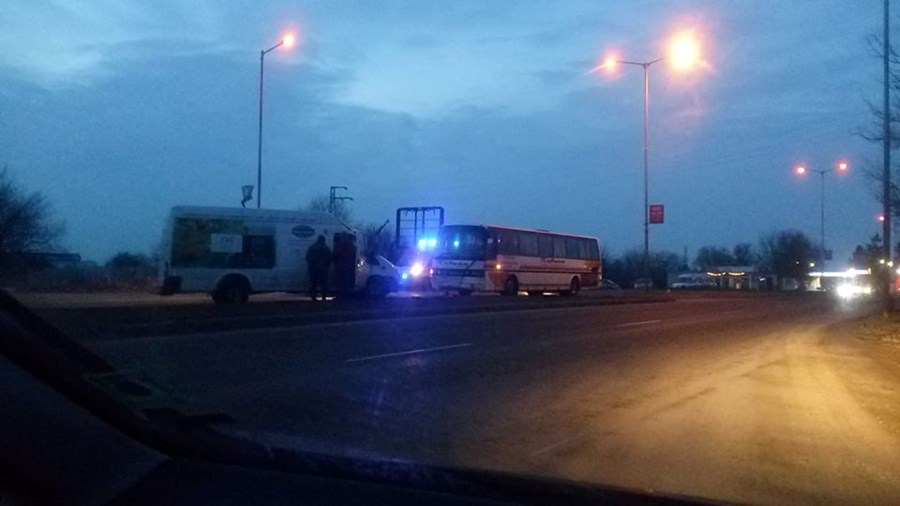 По данни на очевидци са се ударили товарен микробус и автобус на шивашката фирма "Карина".