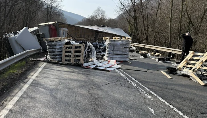 При удара част от превозвания товар се е разпилял по пътното платно, което допълнително усложнява пътната обстановка в невралгичния участък.