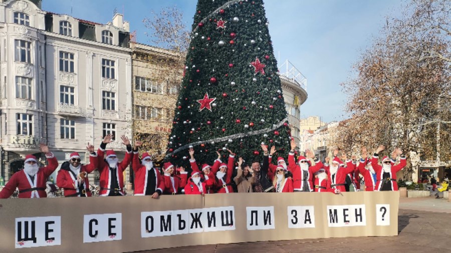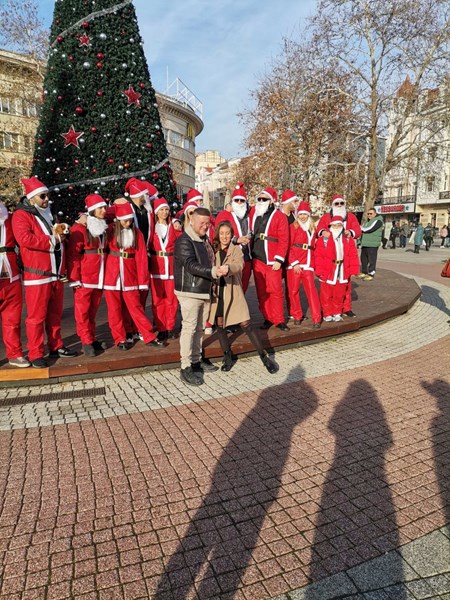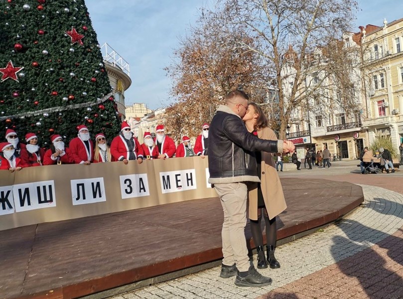 За да участва в изненадата, групата на Дядо-Коледовците чака повече от половин час на площада, като старателно се криеше от очите на влюбената двойка.