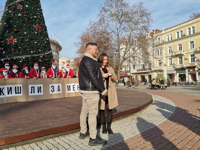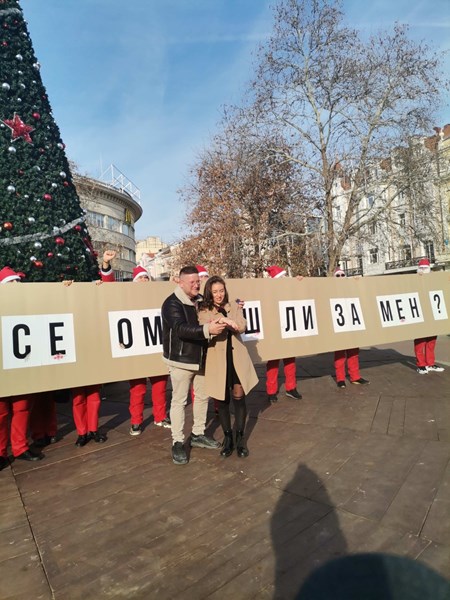 Нестандартно предложение за брак се случи в ранния следобед пред коледната елха в центъра на Пловдив.