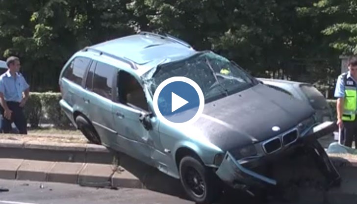 Както ви съобщихме днес по-рано, лек автомобил се преобърна във въздуха и се приземи върху разделителната бетонна ивица на булевард „Скобелев“ в Русе.