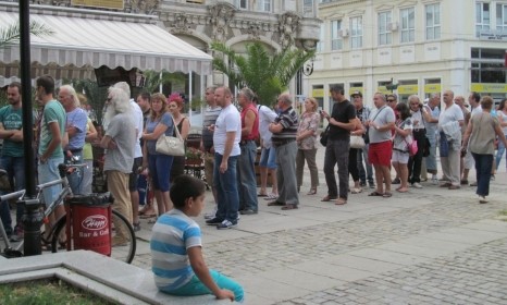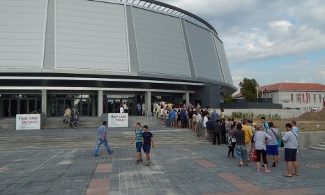 Русенци извиха дълги опашки, които непрекъснато увеличават дължината си, за безплатните билети, които се раздават за концерта на „Назарет“, видя репортер на Topnovini.bg.