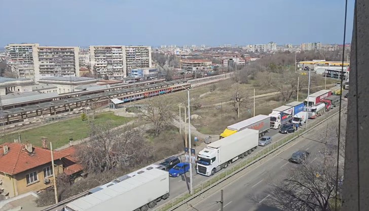 Сериозен транспортен проблем затрудни движението в Русе днес около обед. Огромно задръстване парализира булевард "България", като колоната от автомобили се простираше на километри в двете платна в посока София.