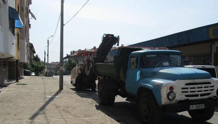 "Екип на общинското предприятие "Комунални дейности" през тази седмица продължава с преасфалтирането на ул. "Пристанищна".