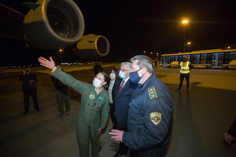 "Успешното реализиране на тази хуманитарна мисия е вследствие на телефонния разговор между премиерите на България и на Китай - Бойко Борисов и Ли Къцян, на 18 март, на съдействието на правителствата на двете държави и НАТО. На борда на самолета, използван от България в рамките на партньорската Програма за стратегически въздушен превоз на НАТО, бяха натоварени 568 000 маски KN95 в обем от 166,13 куб. м, закупени от страната ни", се казва в съобщение на Министерство на здравеопазването.
