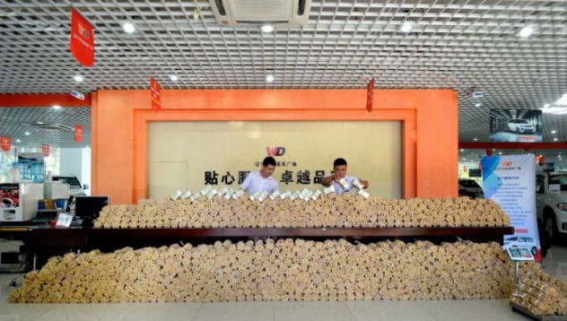 Всеки човек оценява своя труд и обича да спестява. Опознаването на стойността на всяка стотинка може да ви помогне за закупуването на големи покупки и именно в този случай ще бъдете очаровани от китаец, който реши да заплати за новата си кола с монети. Благодарение на неговия брилянтен план, 10 работника прекараха 10 часа в извозването и разтоварването на 1320 пакета в шоурум в китайската провинция Лиаонинг.