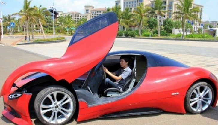 Китайският автомобилен любител и дизайнер аматьор Чен Инси събра погледите международното автомобилно изложение в Хайнан със своя спортен електрически автомобил.