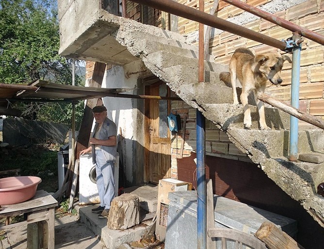 Милан Стефанов е с 91% загуба на зрението, прекарал е и инсулт и не е в състояние да се грижи за себе си. Единственият му другар е улично куче, заселило се в дома му. Две жени носят храна и лекарства на клетника. "Наскоро беше ял мухлясал хляб, защото не вижда какво слага в устата си. Всеки момент може да направи пожар. Заварвала съм въглени по пода, като пали печката", обяснява комшийката Станка Антова, която му се пада и далечна роднина.