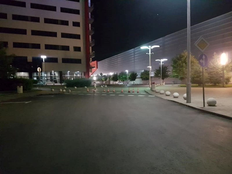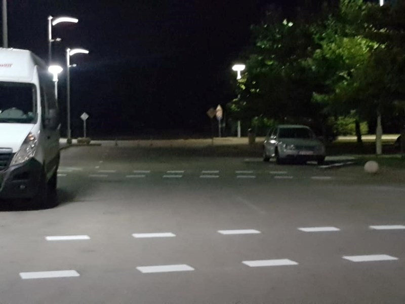 Похвално е, че се поставя маркировка през нощта, когато няма трафик и не възпрепятства движението на автомобили. Но в този случай "майсторите" не са съобразили, че това не трябва да се прави едновременно на всички изходи на паркинга, където все още има паркирани автомобили.