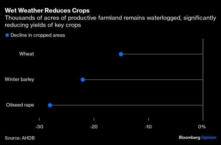 Засегнати са и зърнените култури. След лошия зимен сеитбен сезон земеделските производители се борят да влязат в полетата си за пролетна сеитба. Проучване на AHDB показва, че засетите площи с пшеница, маслодайна рапица и зимен ечемик в Обединеното кралство са намалели значително, което повишава местните цени и прави страната по-зависима от вноса. Сеитбата на пшеница във Франция също е значително забавена.