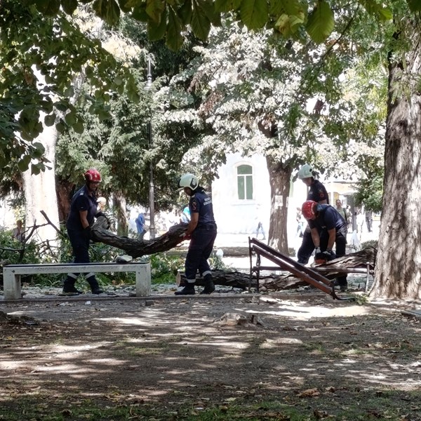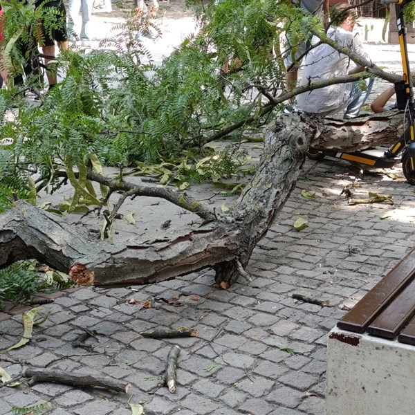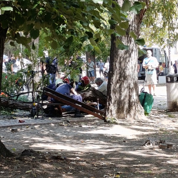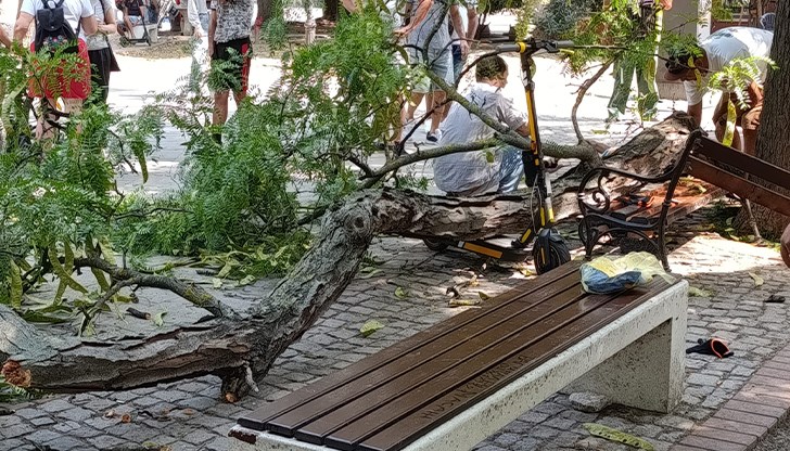 Мъж пострада сериозно във Варна, след като клон от дърво падна върху него в градинката зад сградата на Операта. Инцидентът се случил, докато той е седял на пейка в компанията на жена и дете, които по чудо не са пострадали.