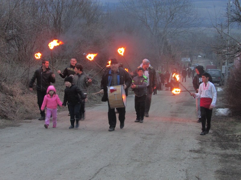 По свечеряване всички участници в празника се отправиха към местността Бог баир. Младежи запалиха от осем страни няколко метровата клада. Под звуците на духовата музика се изви кръшно българско хоро. След като пламъците се успокоиха малки и големи започнаха да се надпреварват и да прескачат огъня, за да прогонят болести и неволи, да няма природни бедствия, цялата година да бъде щедра и плодовита.