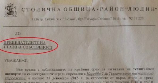 Той е адресиран „до преЦедателите на етажна собственост.