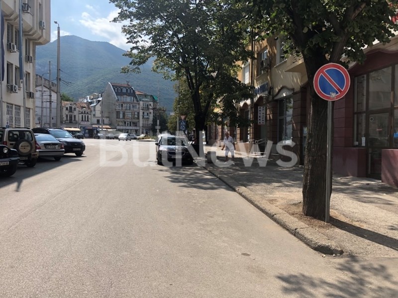 От снимките се вижда, че вместо да спре на Синята зона на площад „Св. Софроний Врачански“, където има достатъчно места, самозабравилият се управник е предпочел да спести 2 лв., нагло затапил движението по ул. „Александър Стамболийски“ и паркирал там, въпреки поставения пътен знак, който забранява това.