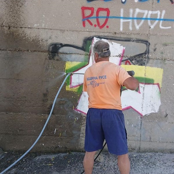 Но загрозяването на града ни с надписи не трябва да приемаме. По тази причина закупихме машина, която може да почиства надписите и наши служители вече работят в Русе.