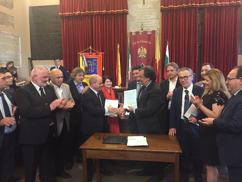 Днес, на официална церемония в кметството на италианския град Палермо, председателят на Асоциацията на дунавските общини „Дунав“ и кмет на Община Русе г-н Пламен Стоилов подписа Меморандум за сътрудничество с проф. Леолука Орландо, председател на Асоциацията на Сицилианските общини и кмет на Палермо.