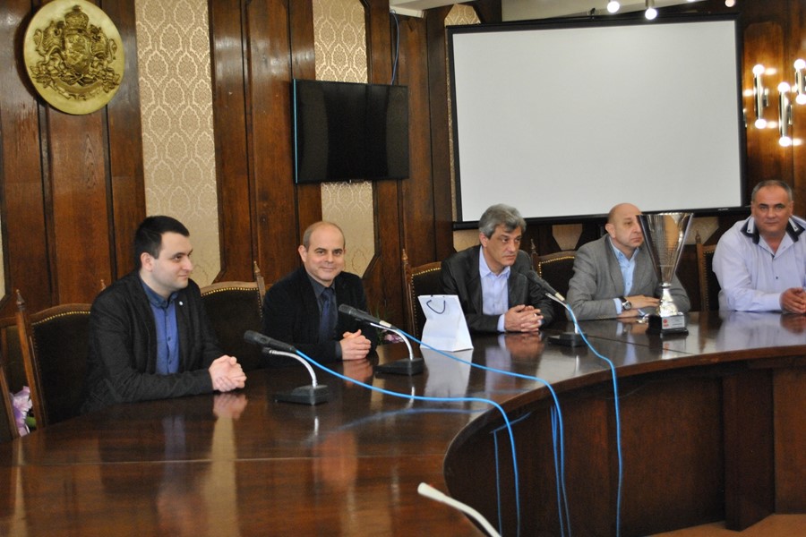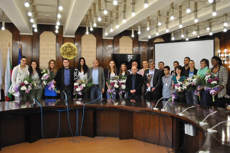 Вчера „сините феи”, които за четвърти път завоюваха шампионската титла по баскетбол при жените в България, бяха специални гости на кмета Стоилов, заедно с треньора на отбора Георги Божков, президента на клуба Красимир Трифонов и представителя на УС на клуба Иван Иванов. На срещата присъстваха и заместник-кметовете Свилен Иванов и Страхил Карапчански. Повод за нея беше категоричната победа на женския отбор в баскетболния шампионат на България.
