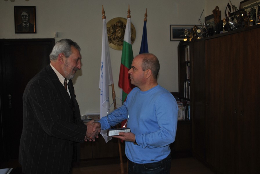 Отличието му бе връчено днес от Пламен Атанасов – председател на Общинския координационен съвет на СБУ, който предаде на кмета и сърдечна благодарност за добрата работа през годината от председателя на Синдиката на българските учители г-жа Янка Такева.