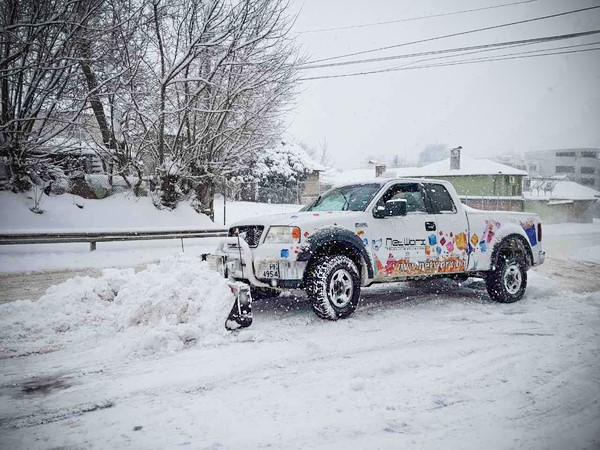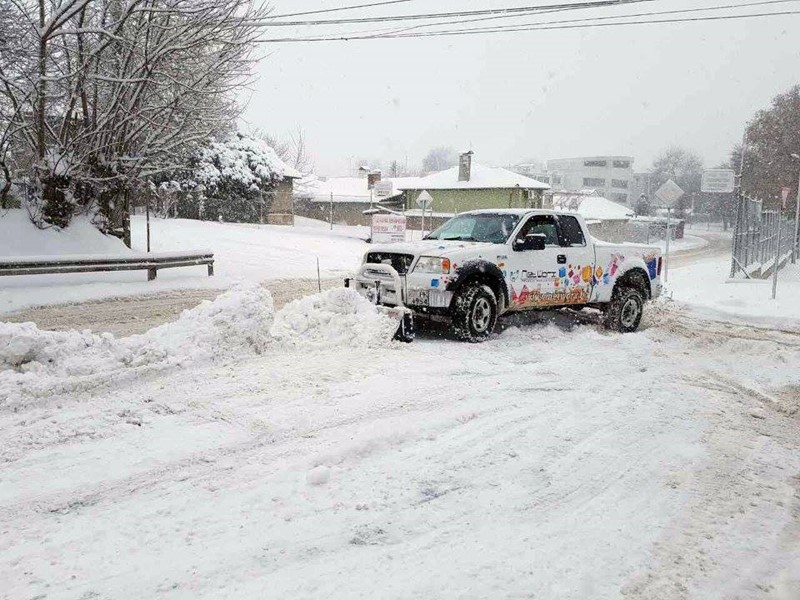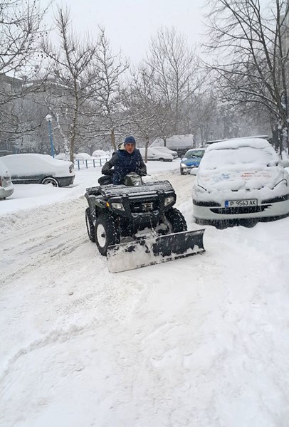 Служители на компанията се включиха доброволно в изриването на снега по пътищата.