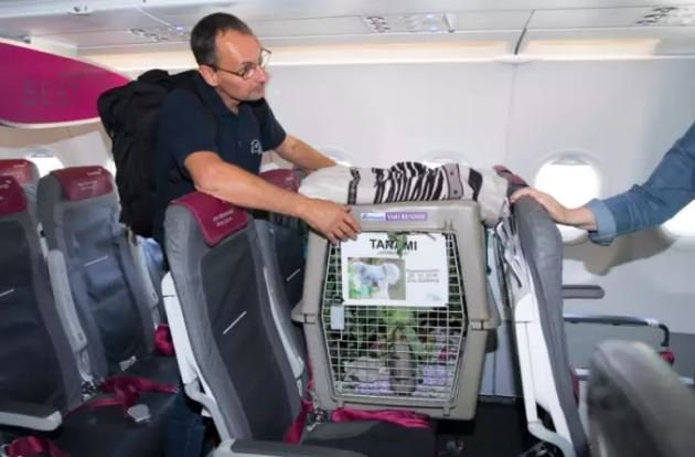 Танами пътува в клетка, привързана към креслото на самолета. Зоопаркът в Единбург публикува снимки от събитието на страницата си в Туитър. На снимката се вижда как коалата се е вкопчила в клон в клетката си, заобиколена от любимата си храна - листа и клонки от евкалиптово дърво.